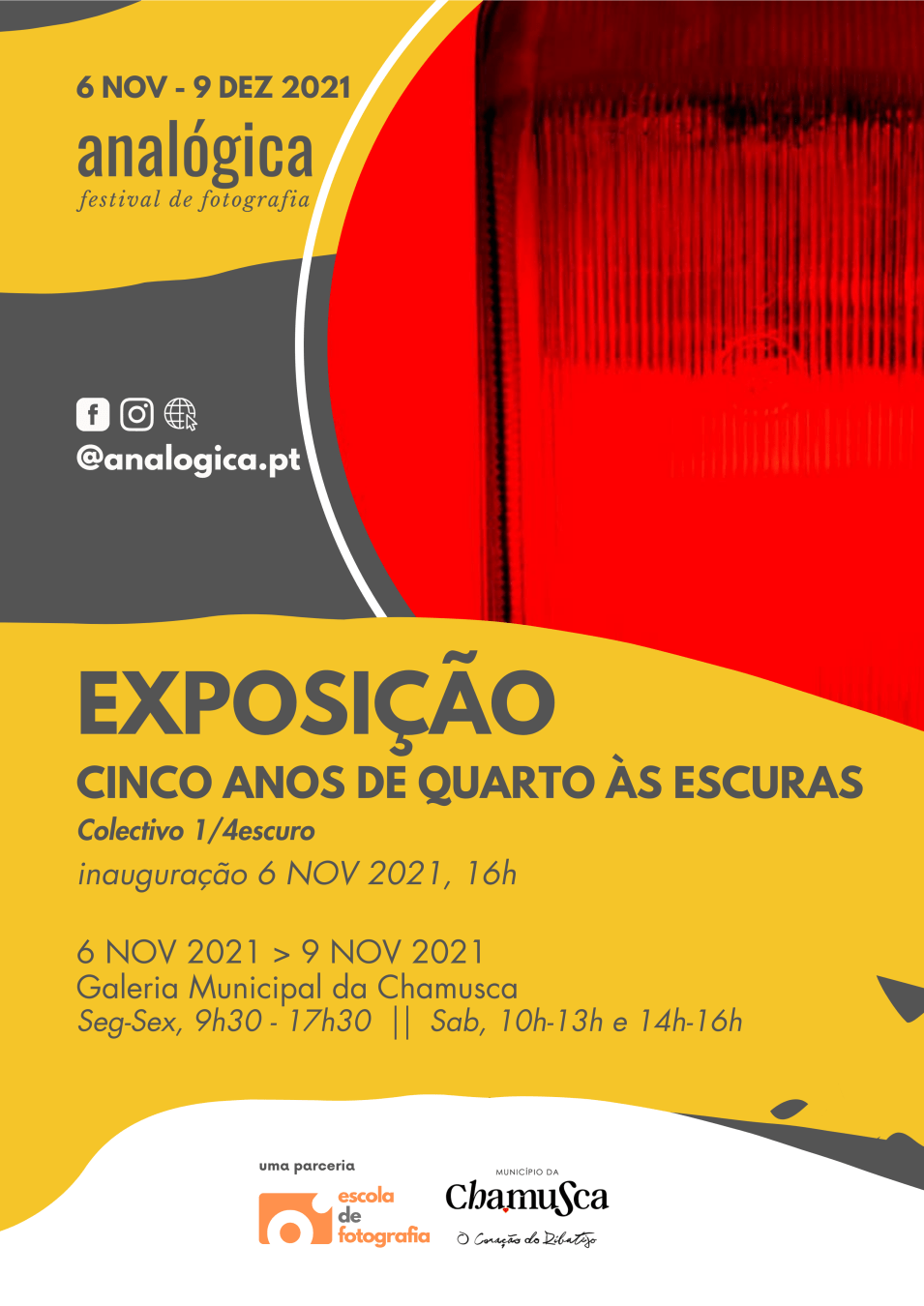 O interesse pela fotografia tradicional e a vontade de dinamizar a comunidade fotográfica levaram os fotógrafos Bruno Candeias, Gonçalo Matias, Luís Silvério, Pedro Freitas e Tiago Soares a criar o colectivo 1/4escuro, instalado no Espaço LX Jovem. Para além dos projectos pessoais, o colectivo planeia realizar oficinas fotográficas e exposições de forma a partilhar com a comunidade as técnicas fotográficas tradicionais.Cinco anos após a formação e a instalação no Espaço Lx Jovem, o colectivo 1/4escuro apresenta em formato exposição um conjunto de obras da autoria de cada um dos membros que o compõem. Recorrendo a vários formatos e técnicas, cada um dos membros apresenta a sua abordagem relativa a uma ou várias áreas fotográficas em que se foca.