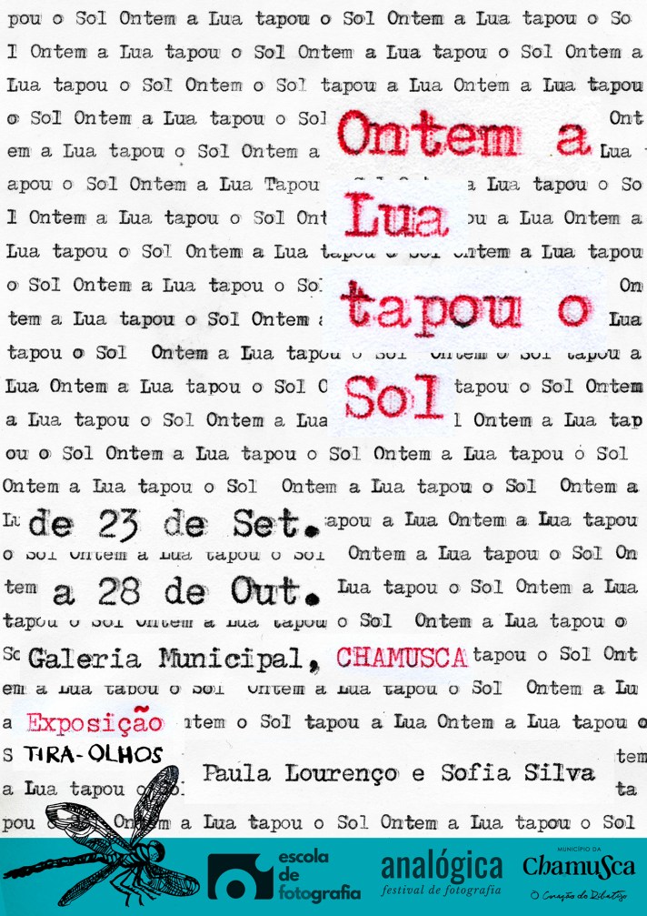 Ontem a Lua tapou o Sol apresenta um conjunto de obras de Paula Lourenço e Sofia Silva, associadas fundadoras da Tira-Olhos, Associação de Fotografia Experimental, onde se experimenta com modos de representação que de alguma forma rejeitam a noção de visor, suporte ou enquadramento. Recorrendo a diversas técnicas de impressão por contacto, ou mesmo descartando a ideia de matriz fotográfica, este conjunto de imagens resulta de uma experiência continuada com a paisagem e as suas muitas relações de afecto com a fotografia.